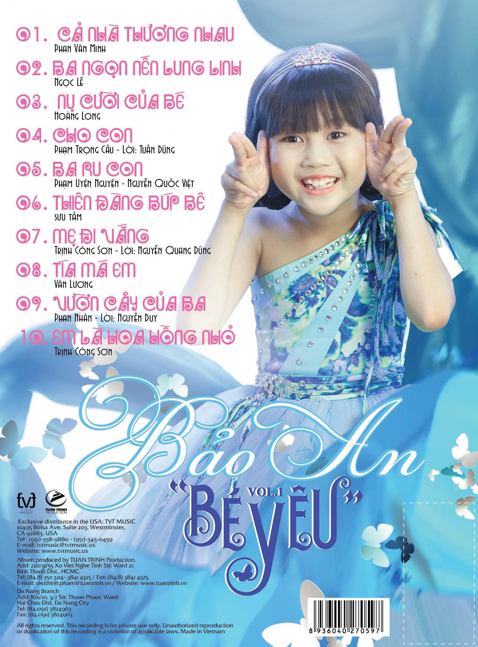 Album bao gồm những ca khúc thiếu nhi quen thuộc như Cho con, Vườn cây của ba, Mẹ đi vắng... Hình ảnh bé Bảo An ở thời điểm thực hiện album cách đây ba năm trước vẫn được giữ nguyên để thể hiện vẻ ngây thơ, trong sáng.